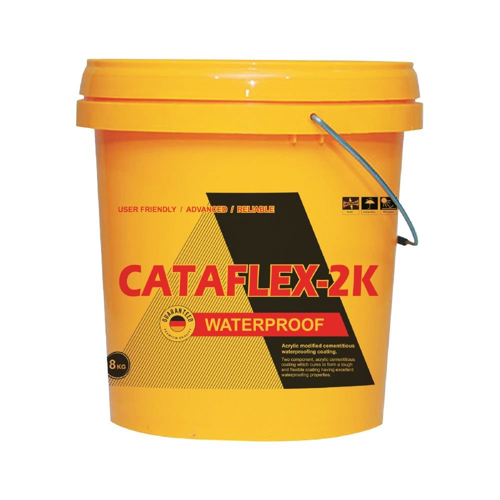 Cataflex-2K is a two-part, acrylic-modified cementitious coating. It is a blend of cement, selected fillers, polymers, and graded silica sand in powder form. The liquid component contains acrylic copolymers and wetting agents.