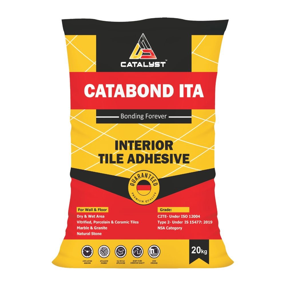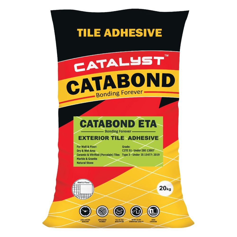 Catabond ETA is a specially formulated premium-grade (C2TE S1) flexible adhesive for the installation of absorbent and non-absorbent tiles and stones. Catabond ETA contains high-grade polymers, silica, fillers, fibers, and special additives.