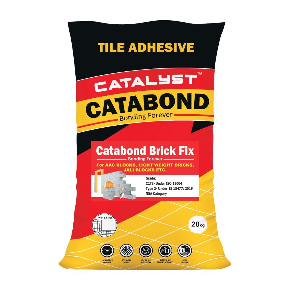 CATABOND BRICK FIX is a high-strength adhesive for the quick and firm laying of AAC blocks with thin joints. Made from cement and graded sand, and blended with polymers, it provides high strength and water retention properties even in layers as thin as 2-3 mm.