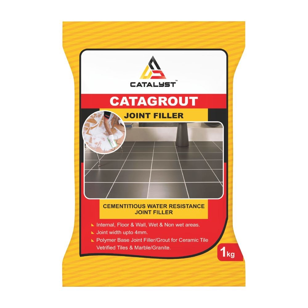 Catagrout is a cement-based tile joint filler suitable for use on both floor and wall tiles. It features a water-resistant formula that effectively fills gaps. Catagrout is designed for grouting various types of tiles, including glazed, ceramic, porcelain, vitrified, fully vitrified tiles, and natural stones.